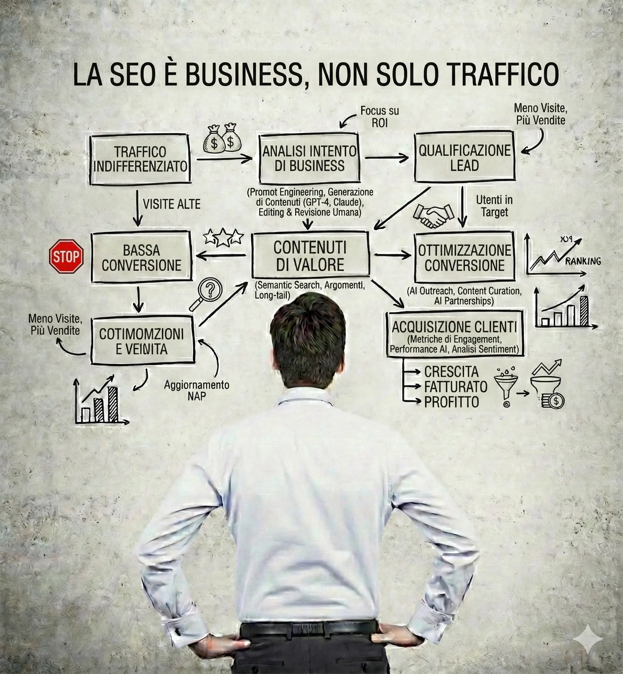Non serve essere primi su Google per parole chiave che non vendono. Serve essere trovati da chi compra. Adesso.